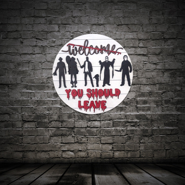 Flat Printing Version Halloween Wooden Decorative Door Sign Horror Welcome Sign(30 x 30 x 0.4cm)