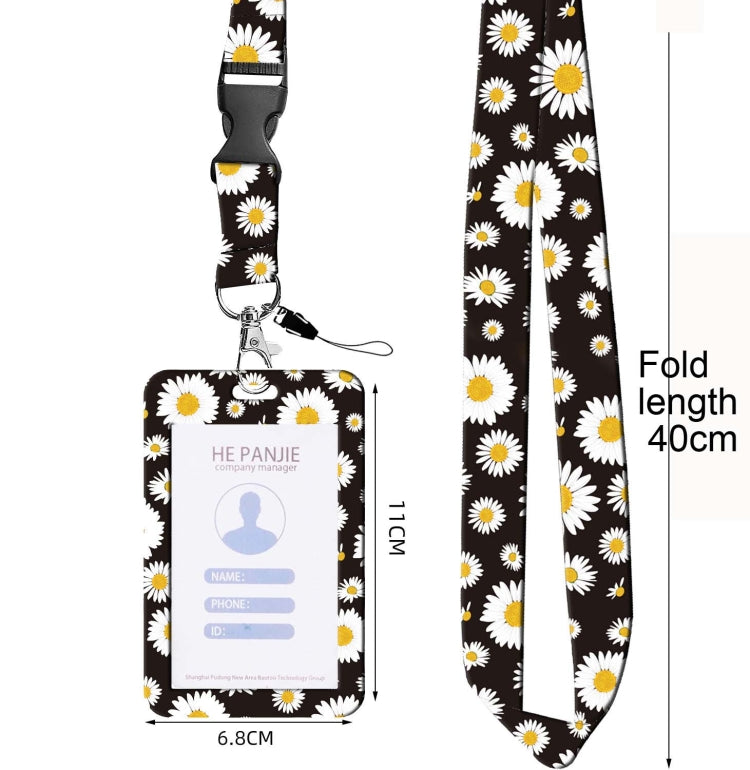 Floral Adjustable Retractable Card Holder Name Badge Work Bank Credit Card Sleeve(Black and White)
