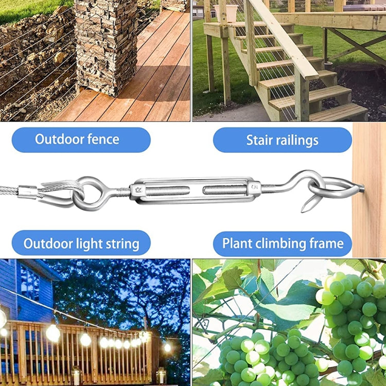 Flower Basket Screws 304 Stainless Steel Wire Rope Hook Tensioner, Specification:M6(Silver)