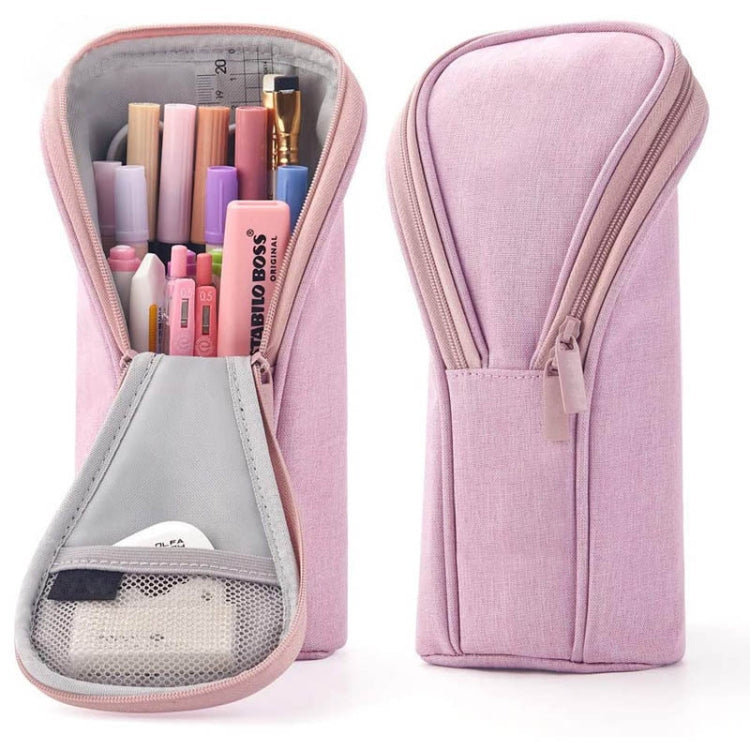 Large Capacity Upright Pencil Case Portable Office Exam Stationery Bag(Pink)