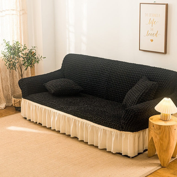 Living Room Stretch Full Coverage Skirt Style Sofa Cover, Size: Double M 145-185cm(Black Wax White)