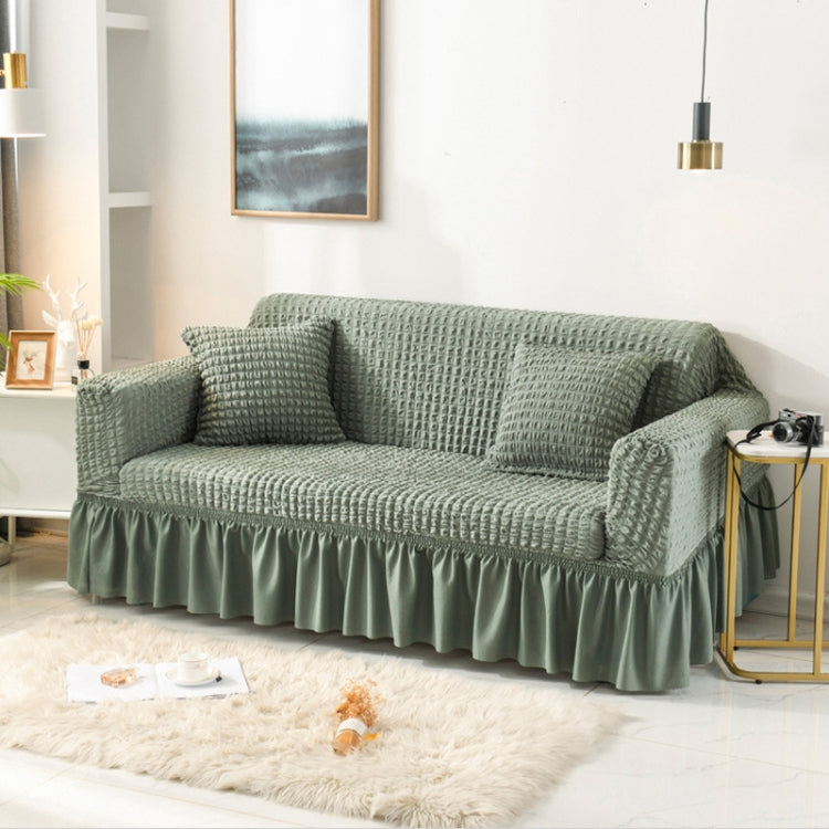 Living Room Stretch Full Coverage Skirt Style Sofa Cover, Size: Double M 145-185cm(One-color Green)