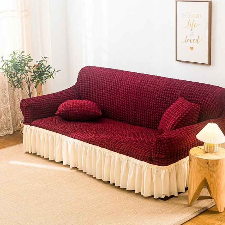 Living Room Stretch Full Coverage Skirt Style Sofa Cover, Size: Double M 145-185cm(Wine Red Wax White)