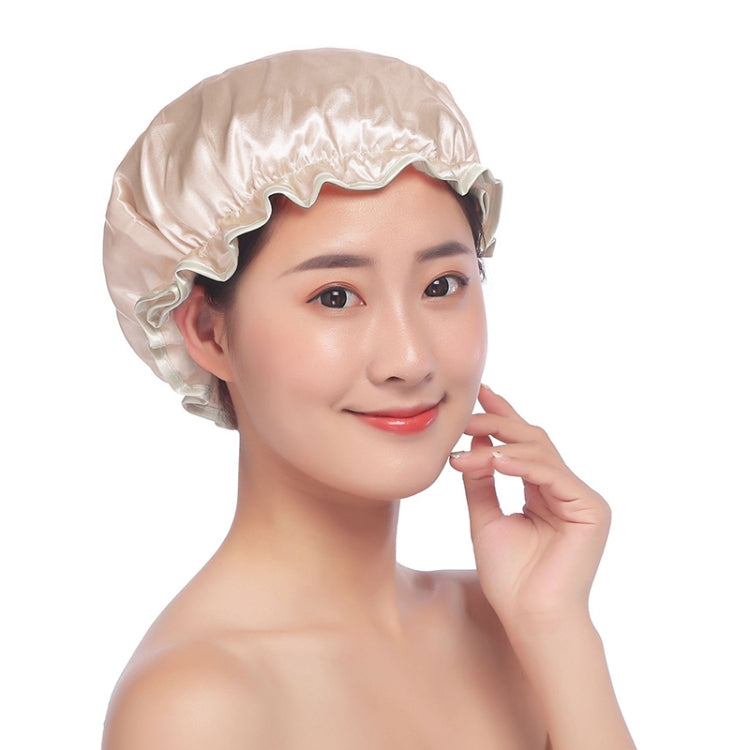 Lovely Thick Women Satin Colorful Double Waterproof Hair Cover Bathing Cap(Gold)