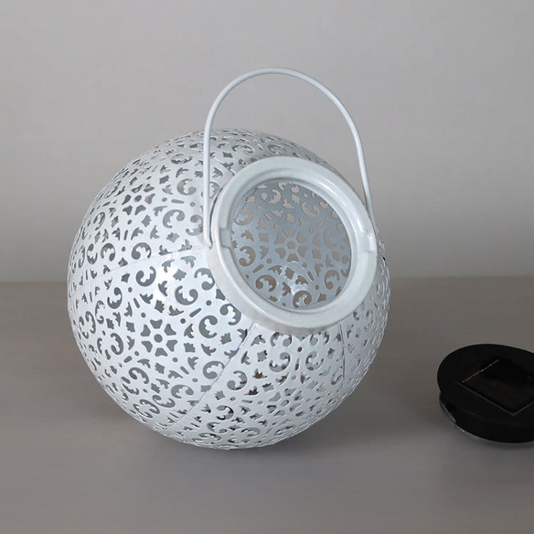 Outdoor Garden Decoration LED Solar Wrought Iron Hollow Ball Shape Portable Lamp(White)
