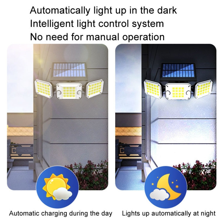 Outdoor Triple Head 224LEDs Dual Sensor Solar Wall Light Rotating Body Sensor Light Garden Home Lighting, Style: Split