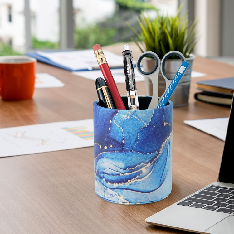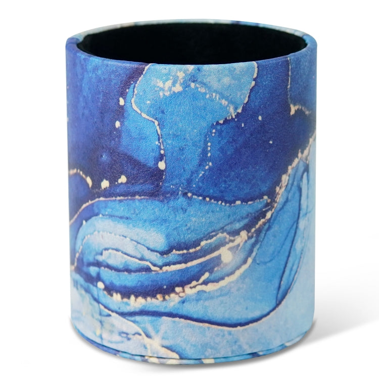 PU Leather Tool Storage Box Desktop Pen Holder(Blue Marble)