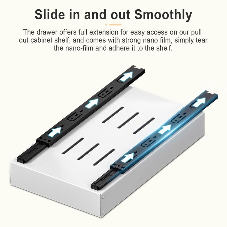 5. Easy and quick installation, no drilling and nailing required, just manually stick the drawer slides to the cabinet.