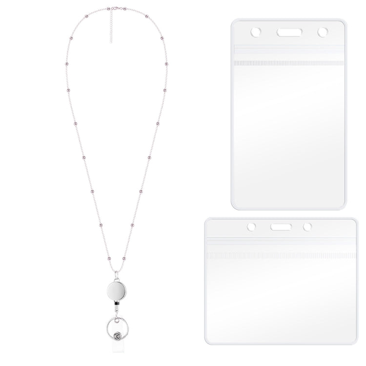 QD-2451 سلسلة خرز معدنية متعددة الوظائف قابلة للسحب وإبزيم حامل بطاقة الهوية (فضي)