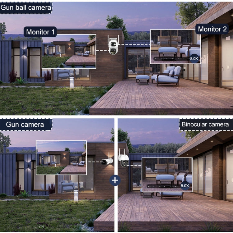 كاميرا ثلاثية QX104 3MP WiFi تدعم التعرف على الوجه البشري وإنذار AI (قابس أمريكي)
