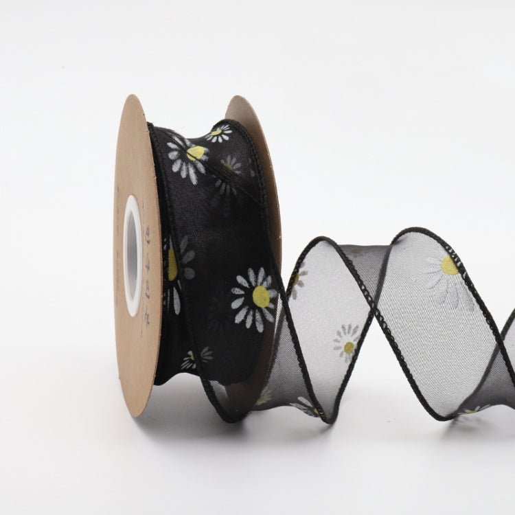 Small Daisy Mermaid Ribbon Flower Bouquet Handwriting Snow Yarn Ribbon(Black)