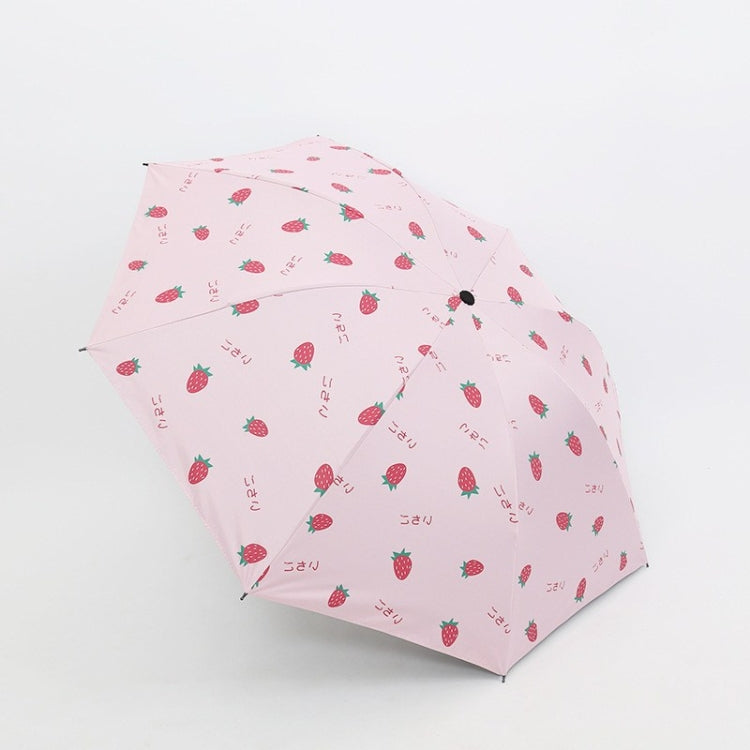 Small Fresh Sun Umbrella Female Sun Umbrella Student Vinyl Three-Fold Simple Dual-Use Sun Umbrella(Strawberry Pink)