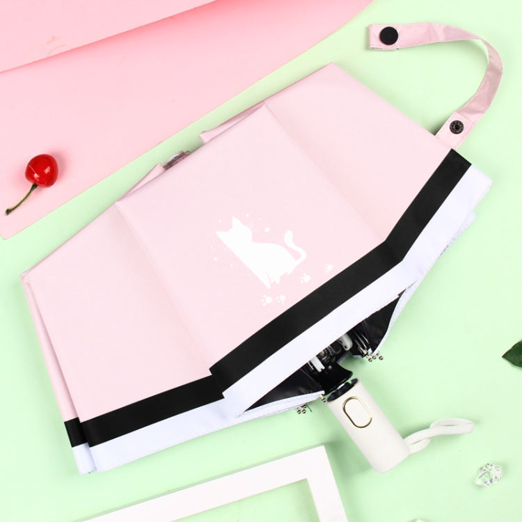 Small Fresh Three-Fold Automatic Black Rubber Sunscreen Umbrella Cartoon Cat Sunny Rain Umbrella(Pink)
