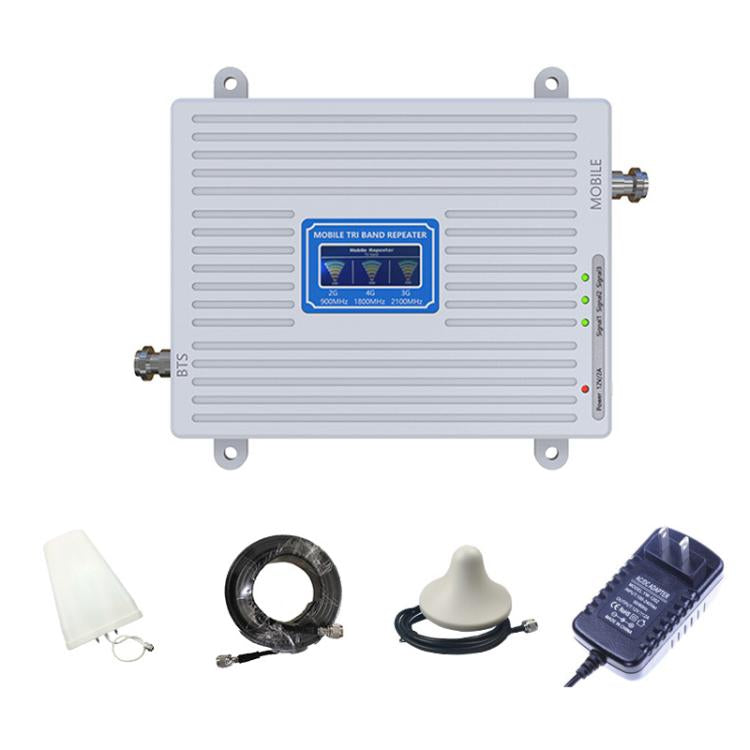 Triple-Band 900/1800/2100 Mobile Phone Signal Reception Booster Amplifier, Specification: US Plug(With 10m Cable)