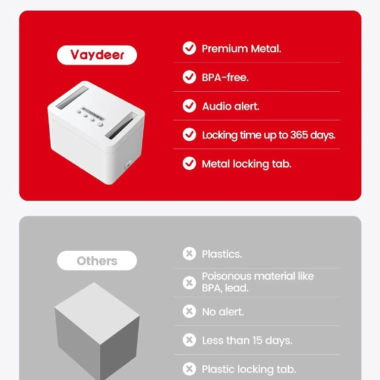 Vaydeer Metal Timed Self-Control Phone Lock Box With Child Lock And LED Display, Spec: Small White