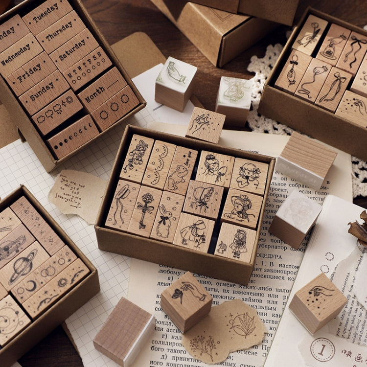 مجموعة ختم مجموعة خشب الزان العتيقة مجموعة ختم كتيب خشبي (عدد الألعاب)