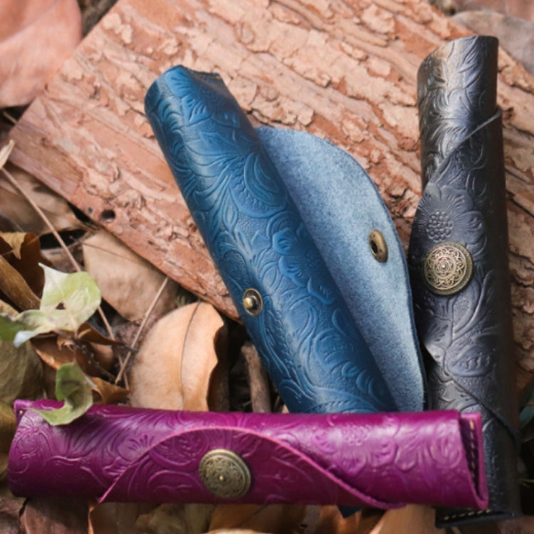W-T24 Literary Retro Leather Roller Blind Pencil Case(Blue Carved)