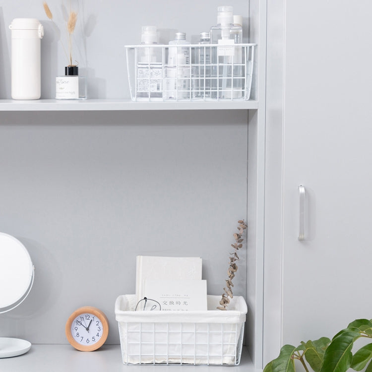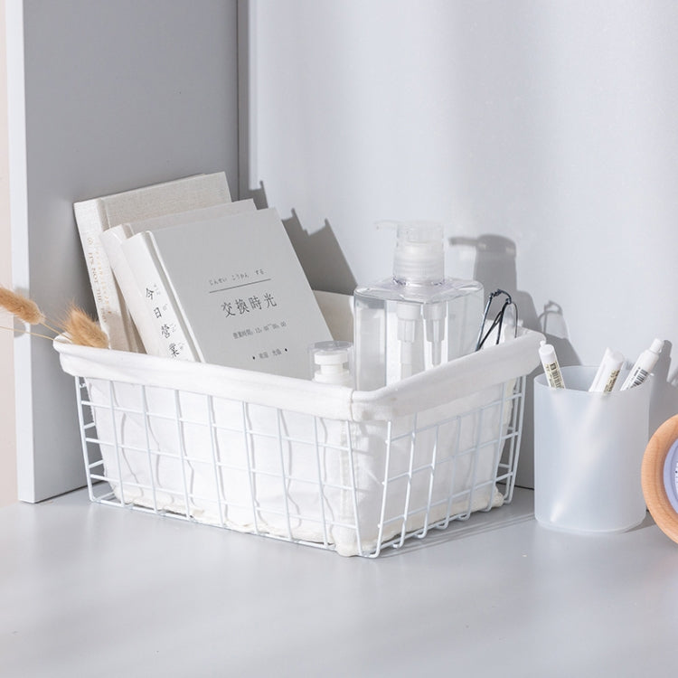 Wrought Iron Tabletop Snack Storage Box Sundries With Cloth Storage Basket(White)