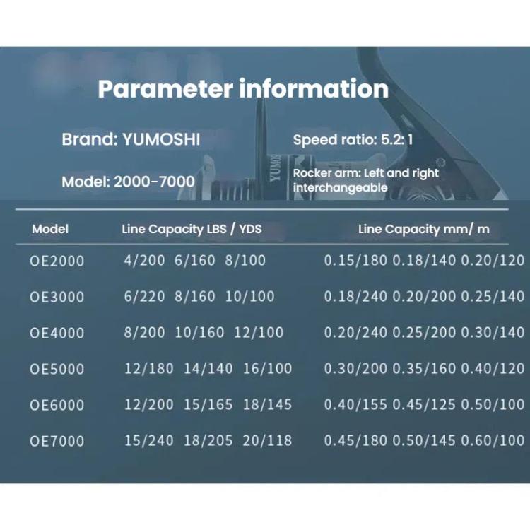 YUMOSHI OE4000 YUMOSHI Metal Spool Spinning Fishing Reel with 5.2:1 Gear Ratio, Foldable Handle & Wooden Grip