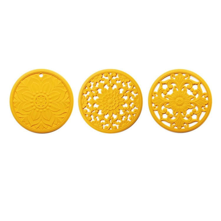 3 in 1 Hollow Flower Silicone Heat Insulation Pad Anti-Scalding Pot Bowl Pad Set(Yellow)