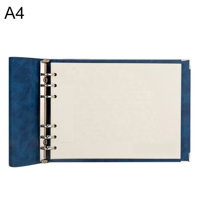 A4 Faux Leather Loose-leaf Grid Notebook, Style:Blank Inner Core(Blue)