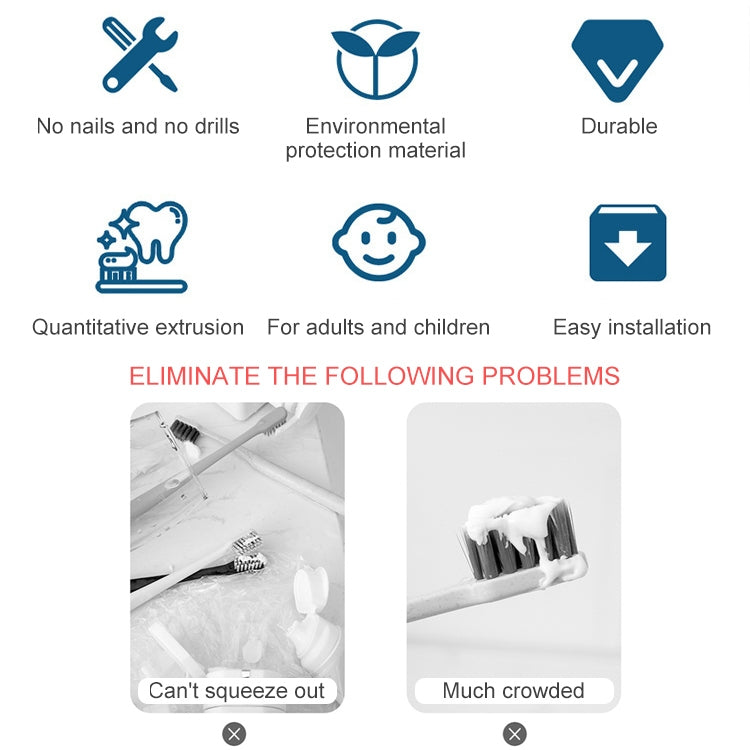 6. Features: environmentally friendly material, strong and durable, quantitative extrusion, simple installation, easy to use, elastic thread interface is suitable for most toothpaste, the overall removable for easy cleaning