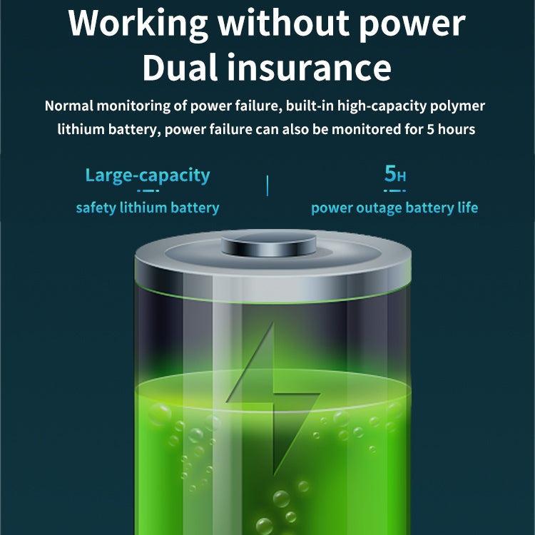 2. Power failure battery life, double insurance: power failure normal monitoring, built-in 1100 mAh lithium battery, power failure can also monitor for 4 hours.