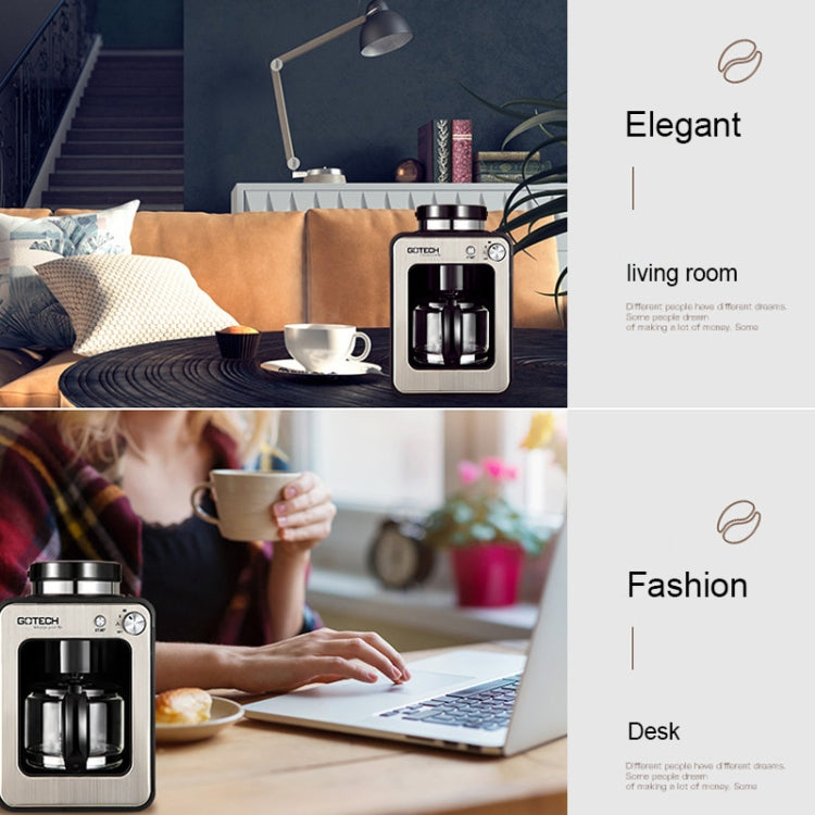 GOTECH Household Small Coffee Machine Automatic Grinding Integrated Commercial Freshly Ground Drip Coffee Pot, Style:UK Plug(Black)