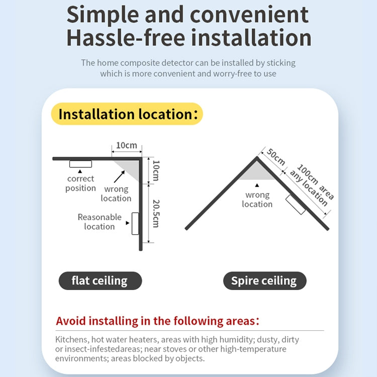 XY-S510COM 2 in 1 Carbon Monoxide Smoke Composite Alarm Detector without Battery