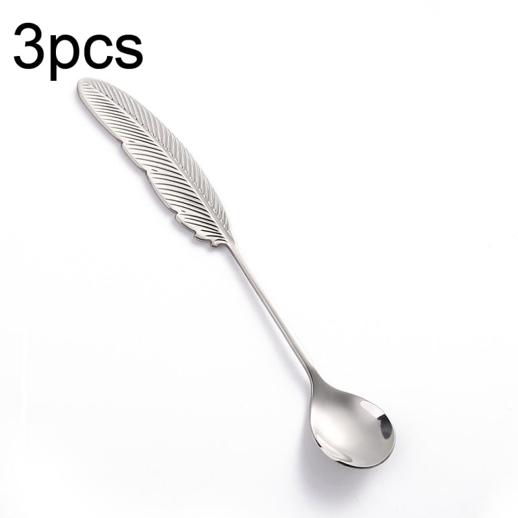 304 ملعقة ريشة من الفولاذ المقاوم للصدأ أدوات مائدة أدبية، النمط: 3 قطع ملعقة - لون حقيقي