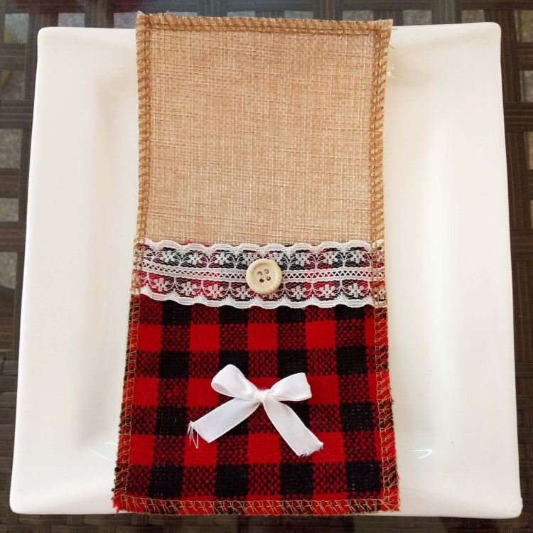 Christmas Knife And Fork Set Christmas Decorations Restaurant Hotel Decoration Checkered, Style: Bowknot