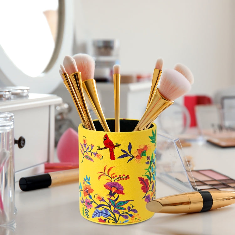 PU Leather Tool Storage Box Desktop Pen Holder(Birdsong)
